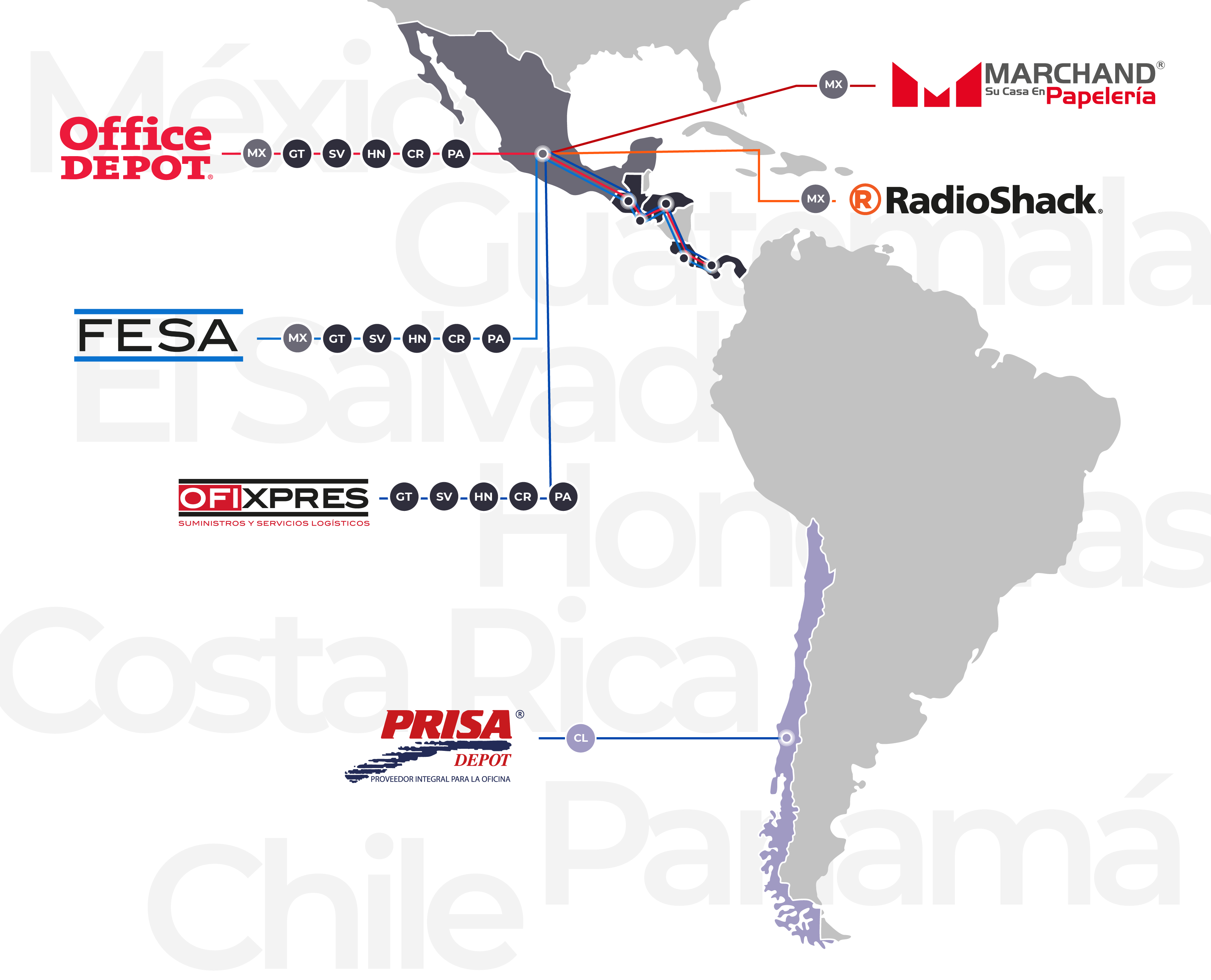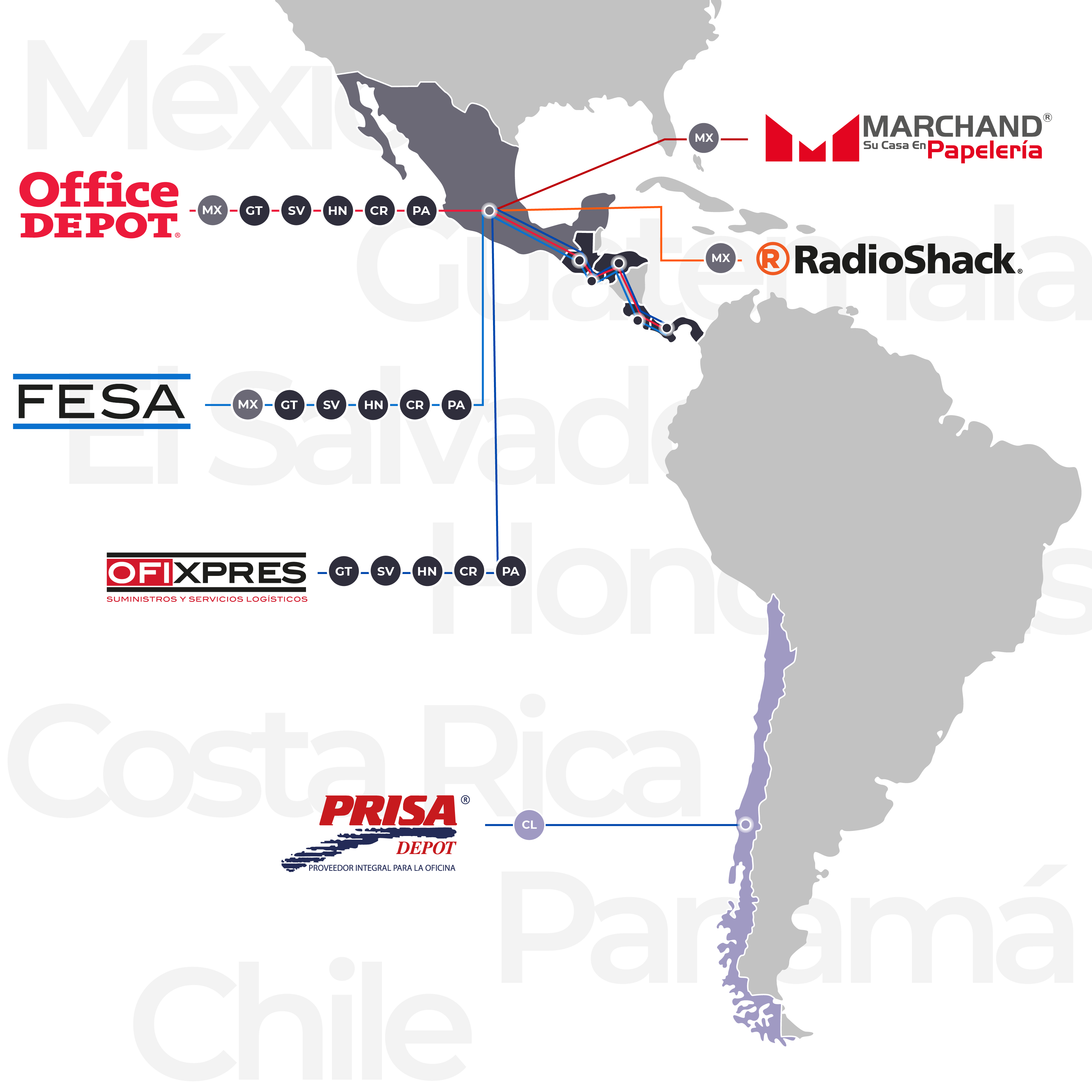 Estamos presentes en: México, Chile, Guatemala, Honduras, El Salvador, Costa Rica y Panamá.